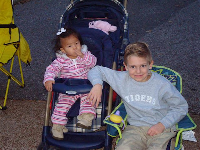 Jesse and Ms. Thumb sucker at the Bartlett Christmas Parade. They both were completely mezmerized!