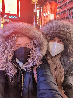 Well these pics are totally out of order so bear with me! I went to NYC last Thursday with Julie Kate for a long weekend full of touristy NYC Things! The main reason for the trip though, was to see her cousin in her last performance on Braodway as Glenda on Wicked! Thanks to COVID, they check the vaccinated performers all the time and she tested positive days before we were to leave to see her. Because all the tickets were bought and reservations made, we went ahead and made the trip! We still saw Wicked of course, but with the understudy as Glenda. We were disappointed we couldn't see her and she never had her "last perfromance". Well, Ginna Claire is moving on the bigger and better things and starring in her own Halmark movie! So that's the upside!